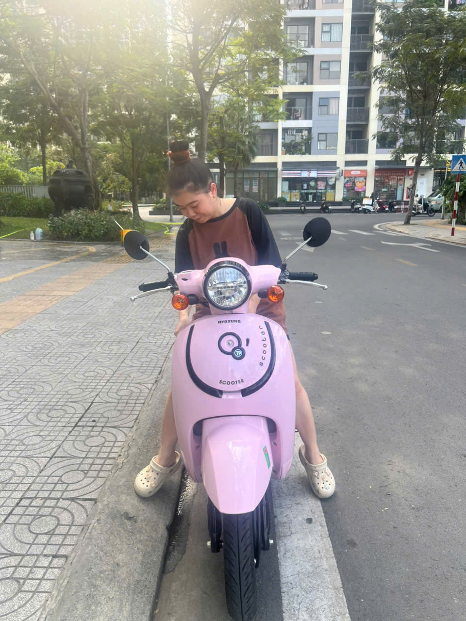 Một em gái dễ thương, nhẹ nhàng đã nhanh chóng chốt ngay mẫu Xe Ga 50cc Giorno HSV2 Hyosung tại Thế Giới Xe Điện chỉ sau thời gian ngắn xem xe và trải nghiệm thực tế. Với sự đồng ý của gia đình, quyết định mua xe được đưa ra khá nhanh bởi mẫu xe này đáp ứng tốt cả về ngoại hình lẫn nhu cầu sử dụng hằng ngày.