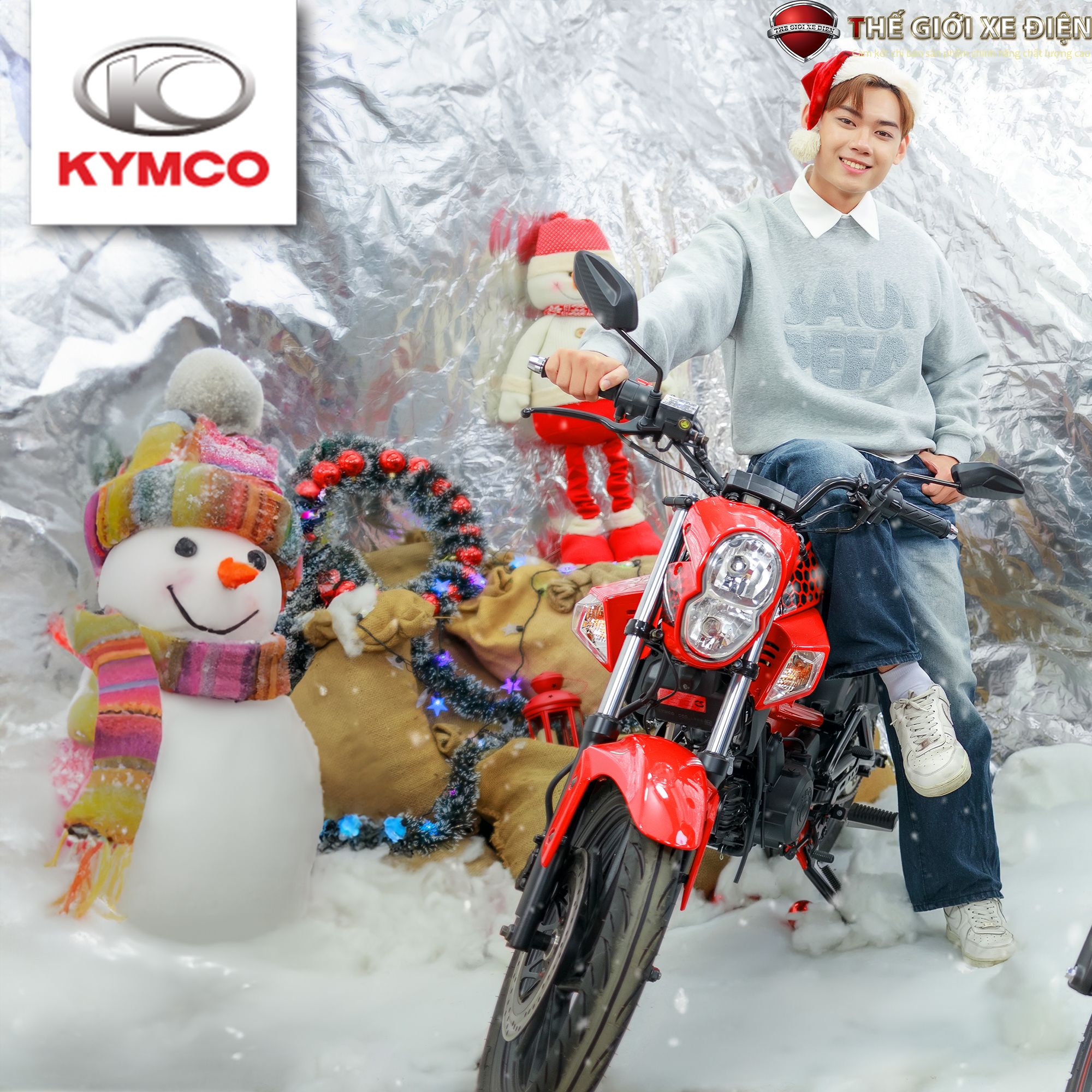 Động cơ lộ ra bên ngoài nổi bật với logo dập nổi của Kymco