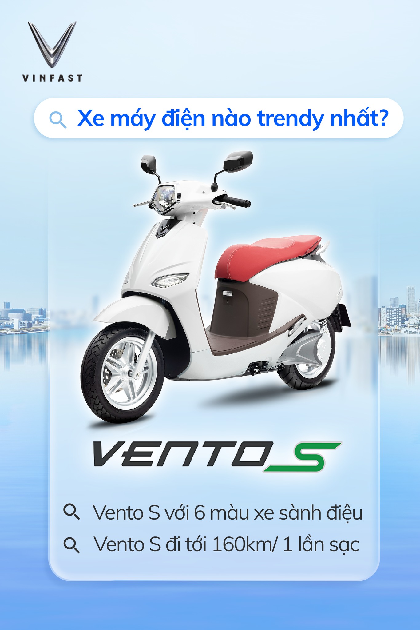 VinFast Vento S là 1 trong 5 mẫu xe máy điện VinFast thế hệ mới được ra mắt chính thức vào ngày 26/4/2022. Bên cạnh những tính năng thông minh, công nghệ an toàn ưu việt, mẫu xe này còn sở hữu phong cách thiết kế ấn tượng, sang trọng và hiện đại.