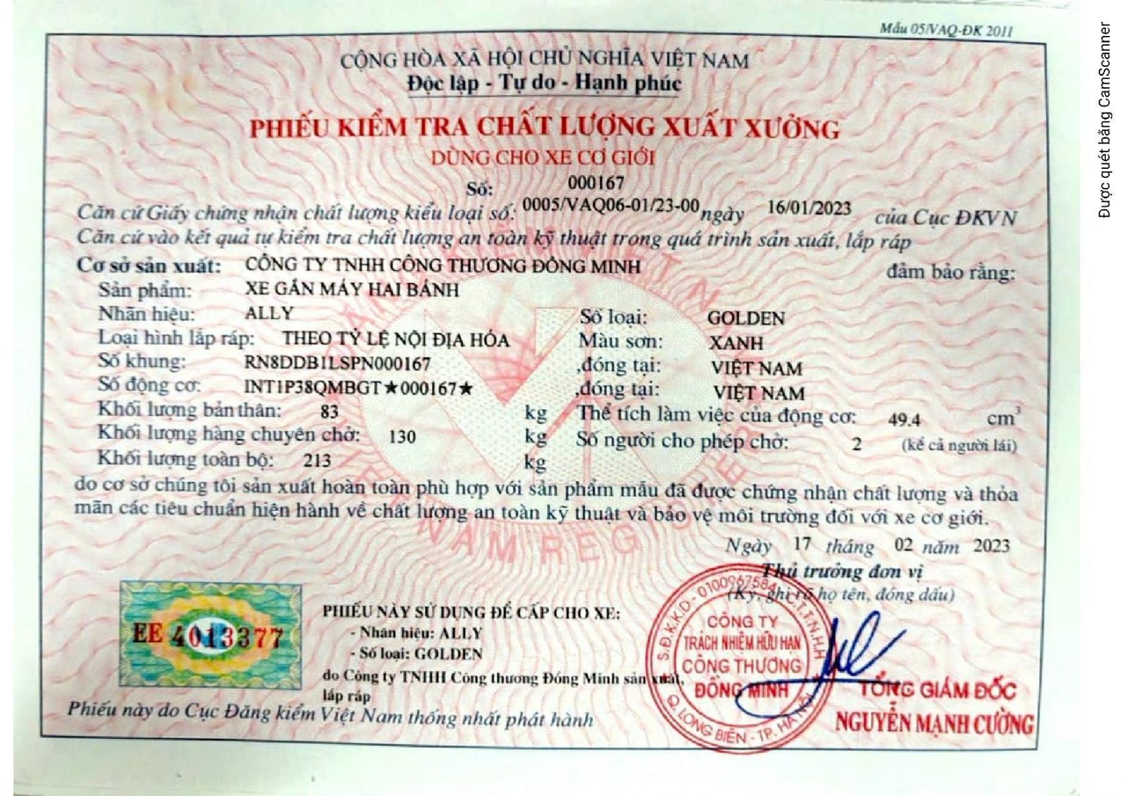 Xe Ga 50cc Golden Ally có đầy đủ giấy tờ đăng kiểm và hóa đơn